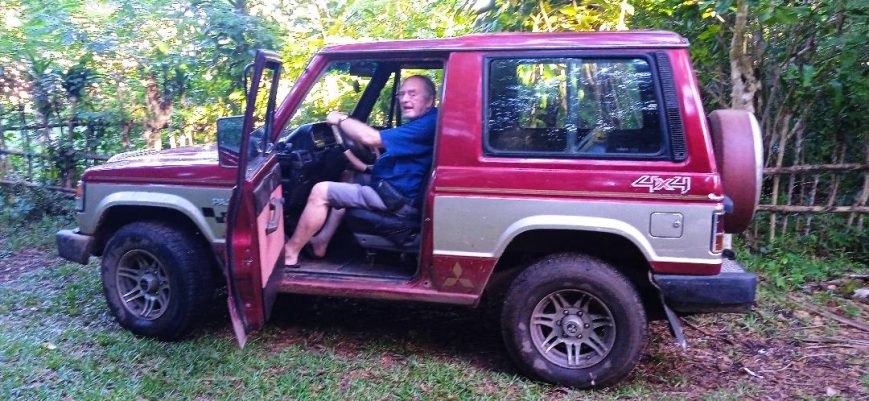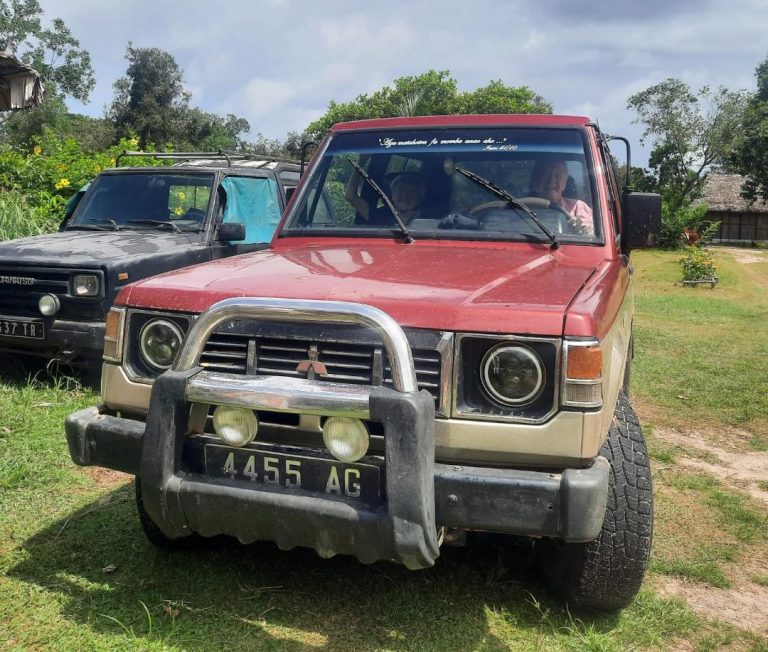 Arrivés à Tamatave en fin d’après-midi le 10 mars, nous passons la nuit à l’hôtel Splendide, que Fara a contacté pour nous. Stupéfaction : la ville a été ravagée par un récent cyclone. Le terme n’est pas trop fort : murs effondrés, toits envolés, poteaux électriques, pourtant en béton armé, cassés comme des allumettes. On a l’impression d’une ville presque entièrement détruite. Faly a tenu à venir nous chercher, et nous arrivons dans ma maison le mercredi 11 après-midi : l’état de la RN5 est apocalyptique ; aux alentours de Foulpointe surtout, ce n’est que route défoncée et trous remplis d’eau. En effet, il avait plu énormément les jours précédents, et les pistes étaient impraticables pour le scooter, surtout chevauché à deux. Heureusement, un deal avec Faly nous a permis de profiter de sa "nouvelle" jeep, un Pajero de Mitsubishi, vieux de 35 ans. Avec lui, nous passerons partout.