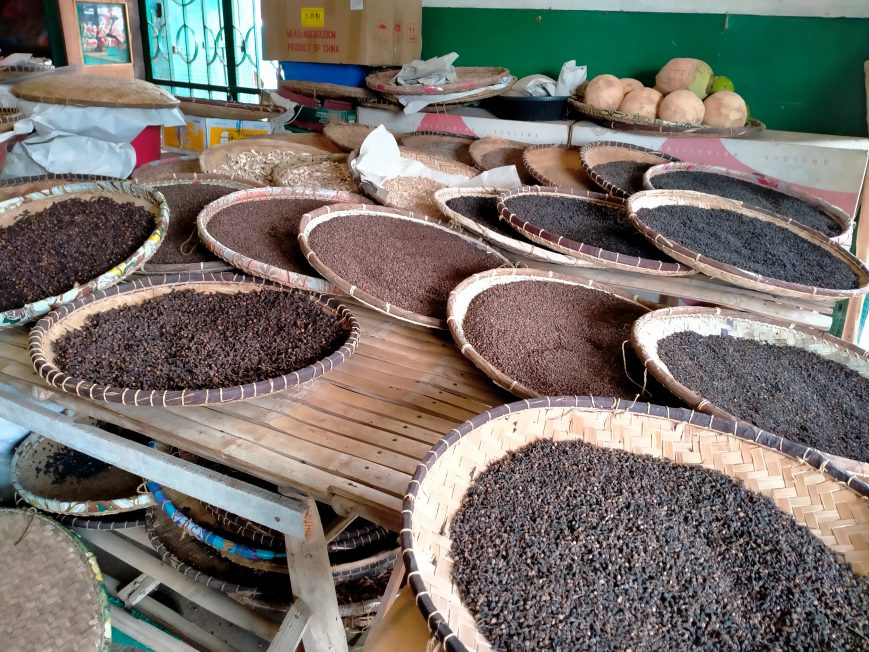 On ne fera qu’une seule « expédition », à Fénérive Est, pour acheter du poivre sauvage chez Jim (mes amis en sont friands !), de l’eau potable en grands bidons jaunes de 20L, et quelques autres emplettes. Ce sera notre seule « sortie», car la route est un vrai calvaire.